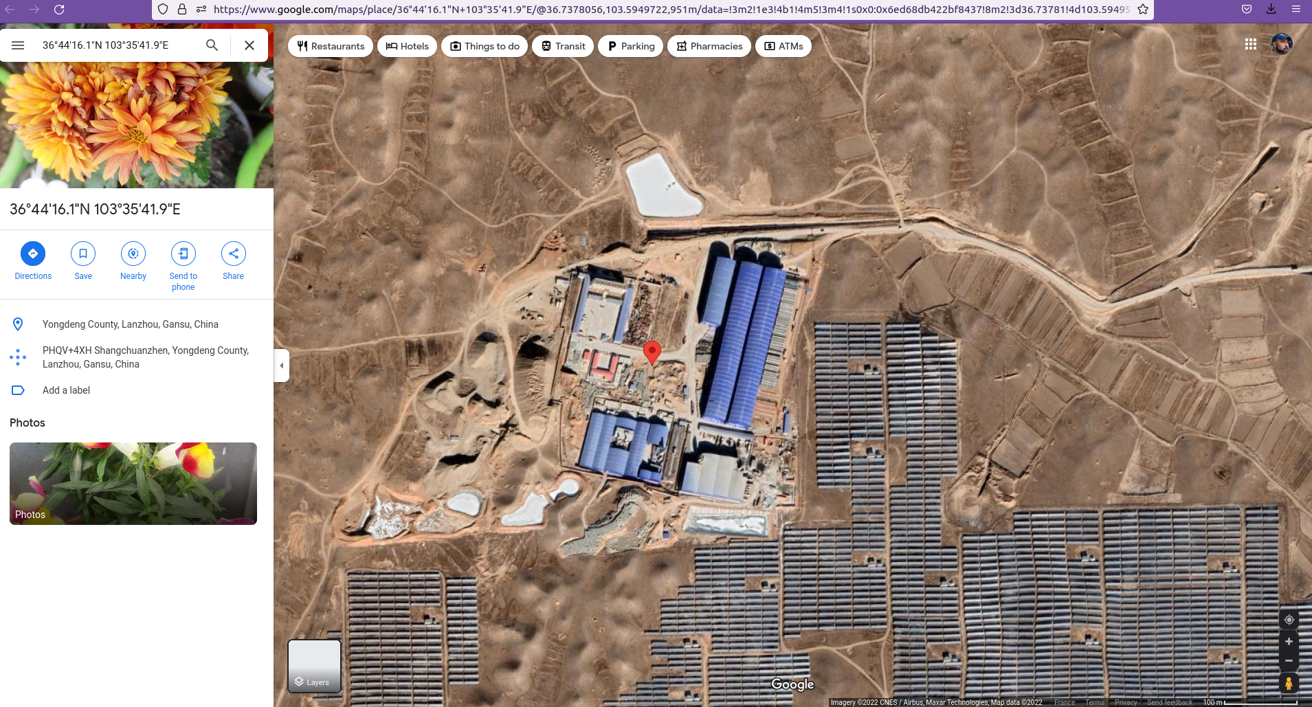 => VUE SATELLITE dans GoogleMaps: 36.737810 103.594957